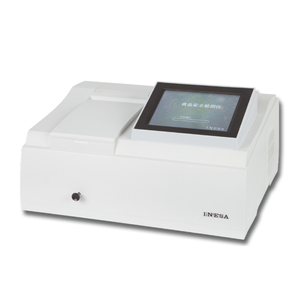 ,酶催化神經(jīng)傳導(dǎo)代謝產(chǎn)物(乙酰膽堿)水解,其水解產(chǎn)物與顯色劑反應(yīng),產(chǎn)生黃色物質(zhì),用分光光度計(jì)測(cè)定412nm下吸光度隨時(shí)間的變化值,計(jì)算出抑制率,通過(guò)抑制率可以判斷出樣品中是否含有有機(jī)磷或氨基甲酸酯類(lèi)農(nóng)藥的殘留。可以實(shí)現(xiàn)有機(jī)磷及氨基甲酸酯類(lèi)農(nóng)藥殘留量的現(xiàn)場(chǎng)快速檢測(cè)。